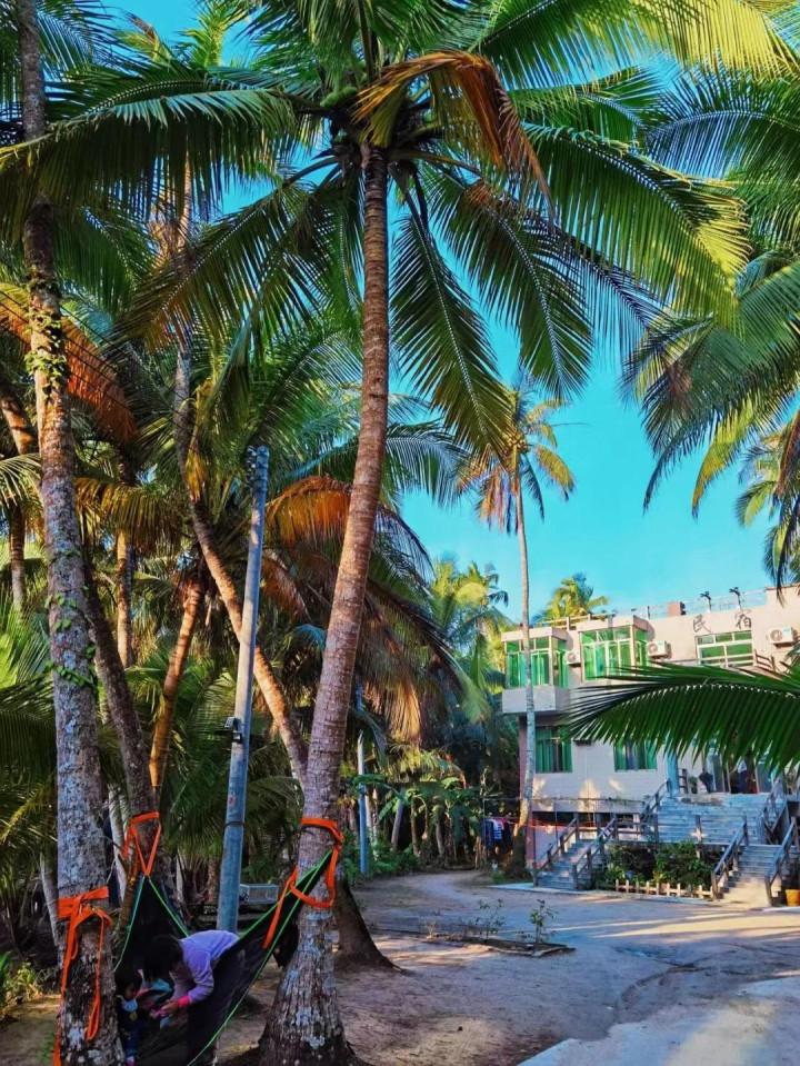 这里更有种置身东南亚的错觉,清晨拉开窗帘,阳光沙滩椰林尽收眼底,惬意非凡。