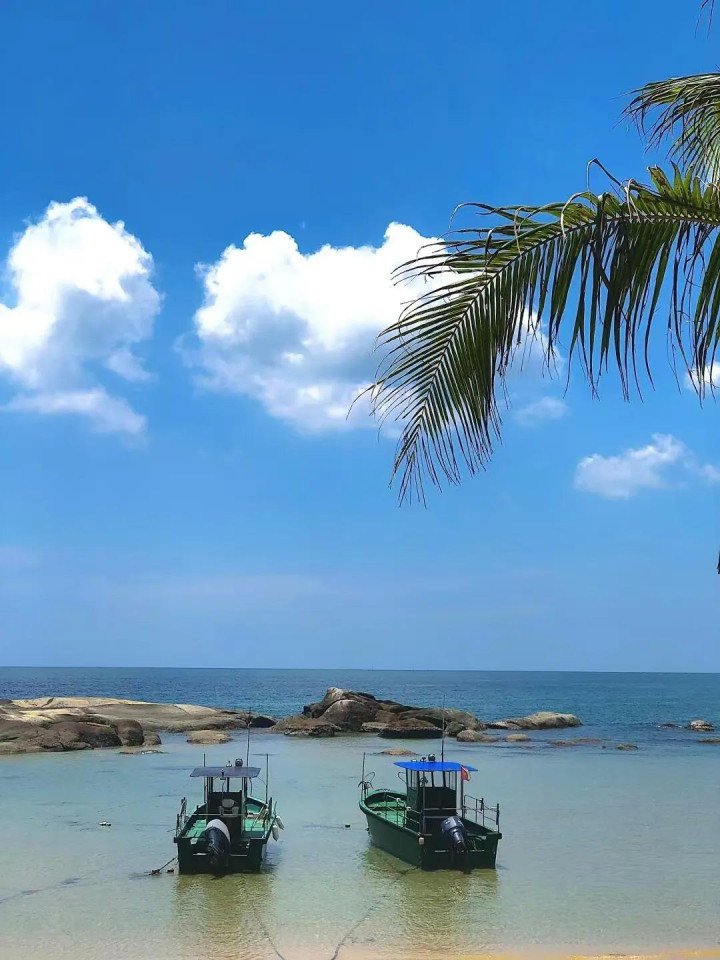 阳光、沙滩、椰林,与辽阔壮美的大海在此邂逅。这里的海水清澈见底,宛如玻璃海般梦幻。近岸处,海水在阳光下近乎透明;远眺,则是一片令人心醉的湛蓝,仿若安徒生笔下最美的矢车菊花瓣。
