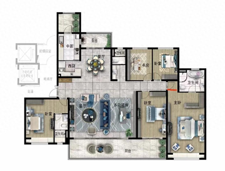 它有5间卧室,不管是和父母同住,还是多胎家庭,都能满足每个人对独立空间的需求。家里的每个成员都有自己的小天地,互不干扰。