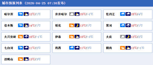 后天,黑龙江中北部有雨夹雪,东部有弱降雨,同时大部地区气温仍然偏低,像哈尔滨,今天最高气温降至12℃后,明后两天也仅有15℃,冷意明显。