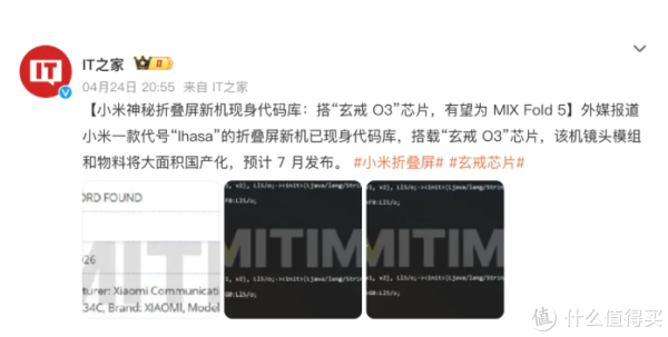 事情是这样的,有人在代码库里发现了小米一款神秘新品,型号叫2608BPX34C,内部代号"lhasa"。看这架势,应该就是传说中的小米MIX Fold 5了。距离上一代MIX Fold 4发布已经快一年了,这次终于要更新了。